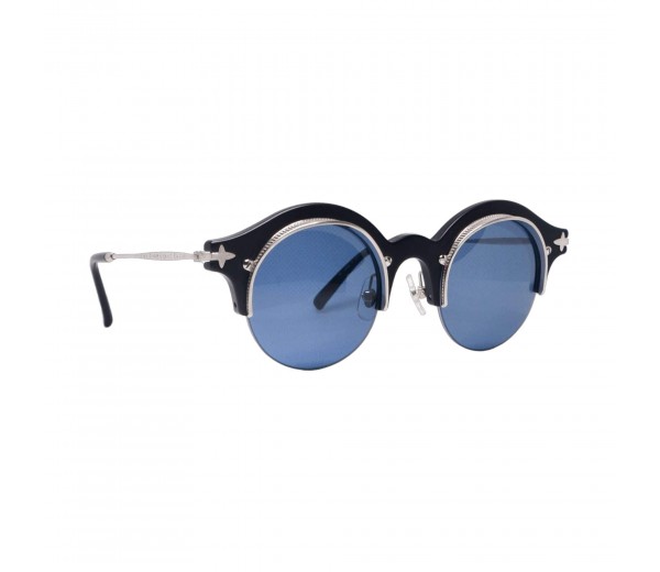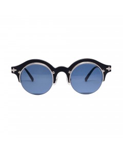 Les lunettes de soleil Matsuda M1014 possèdent une forme ronde rétro en acétate du Japon ornée d'un insert titane en forme de paupière. Ses branches ultra légère sont ciselées et guillochées pour un confort ultime.